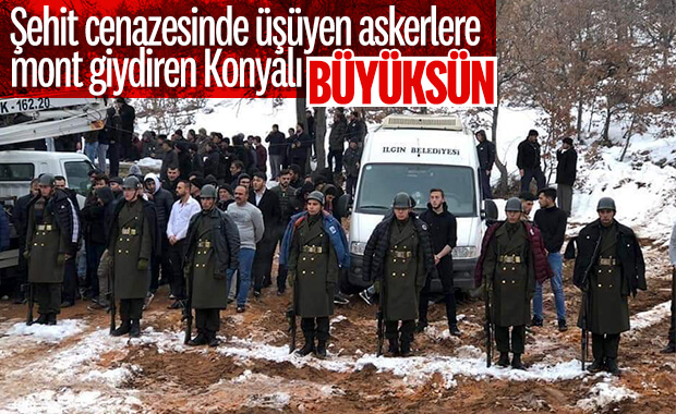 Merasim mangasındaki askerlere montlarını giydirdiler