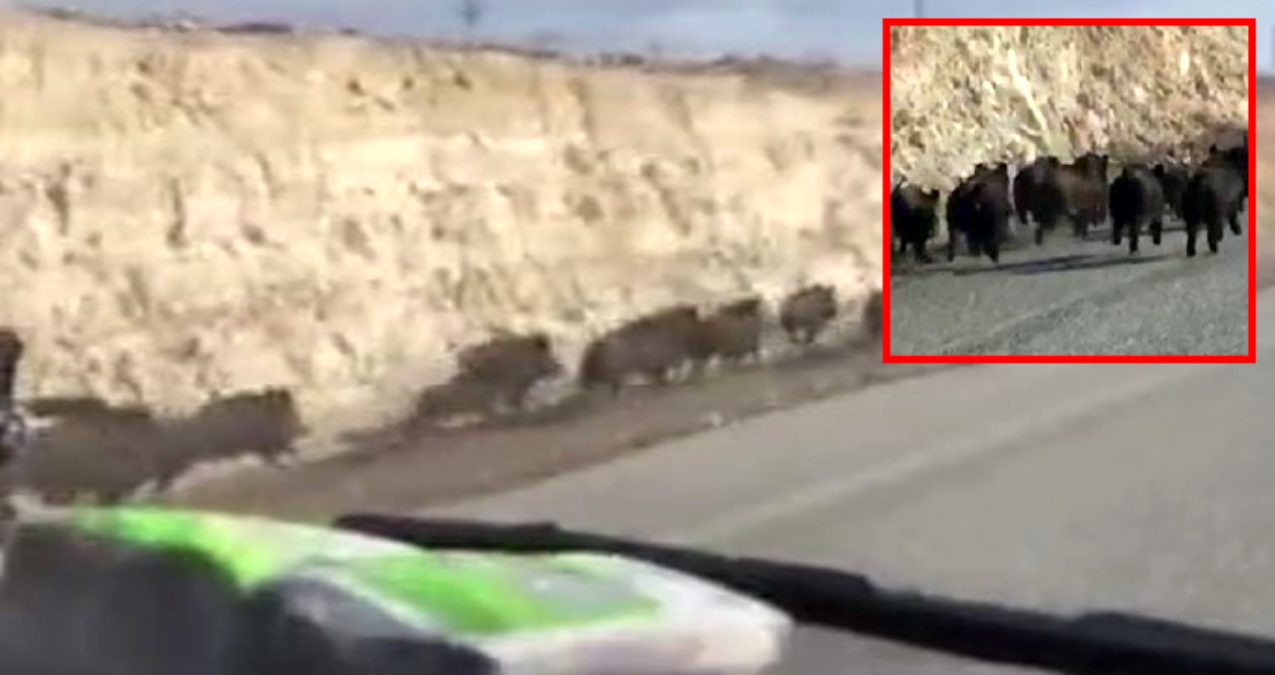Yola inen domuz sürüsü görenleri hayrete düşürdü