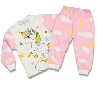 Kız Çocuk 1-3 Yaş Ünicorn Baskılı %100 Pamuklu Pijama Takımı