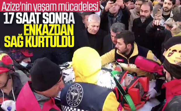 Görevlilerle iletişime geçen Azize enkazdan çıkarıldı