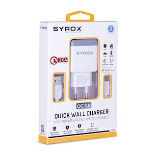 Syrox Q32 TYPE-C GİRİŞLİ 3.0 AMPER HIZLI ŞARJ ALETİ (BEYAZ)