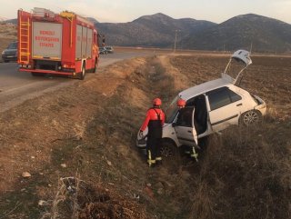 Denizli’de otomobil şarampole girdi