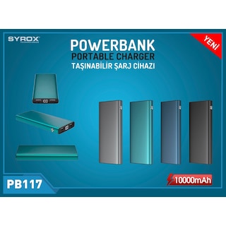 YENİ Syrox Metal 10000 mAh Led Göstergeli Slim Powerbank (2 USB)