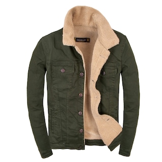 Haki Yeşil Düğmeli Kürklü Erkek Kot Mont