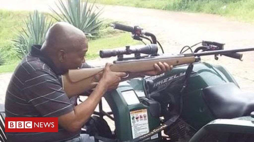 South Africa’s Jacob Zuma takes aim in rifle photo