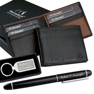 Mimodish HAKİKİ DERİ Sevgililer Gününe Özel Erkek Cüzdan Seti