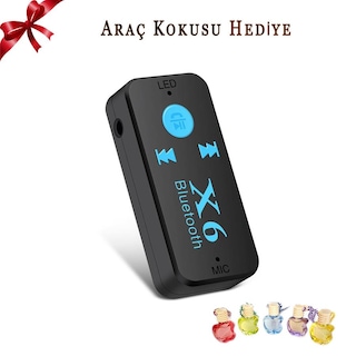 X6 Bluetooth Müzik Alıcısı 3.5mm Aux Adaptör Araç Kiti 3 in 1