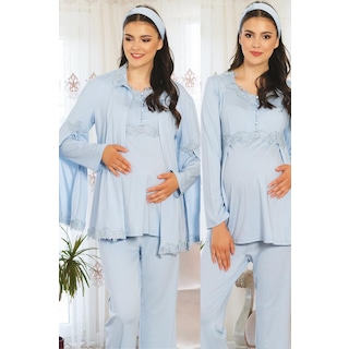 MECİT 5104 PELERİNLİ HAMİLE LOHUSA 3 LÜ PİJAMA SABAHLIK TAKIM