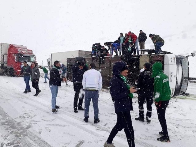 Bursaspor taraftarını Erzurumspor deplasmanına götüren otobüs devrildi: 2 yaralı