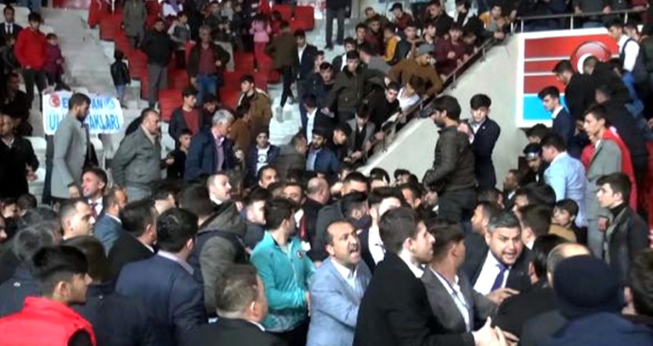 Ülkü Ocakları’nın düzenlediği gecede 2 grup birbirine girince sunucu kavgayı durdurmak için İstiklal Marşı’nı okudu