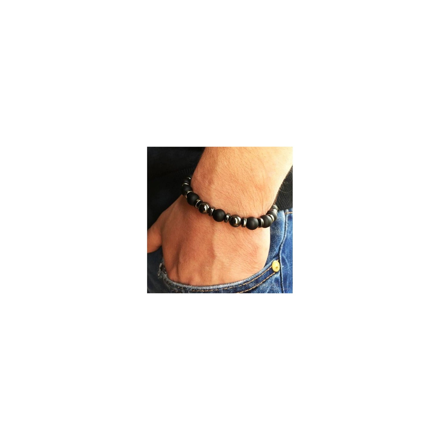 Takıcadde Gerçek Hematit Mat Oniks Doğal Taş Erkek Bileklik