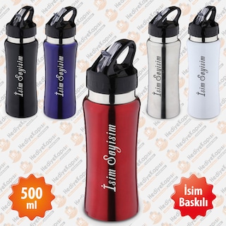 500 ml İsme Özel Emzikli Paslanmaz Çelik Matara Suluk