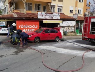 Antalya’da yanan araç çeşme hortumuyla söndürüldü
