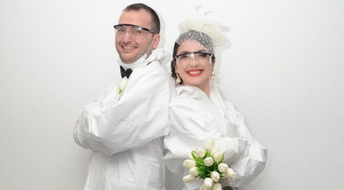 Damat ve gelinlik yerine tulumlarla ‘evet’ dediler