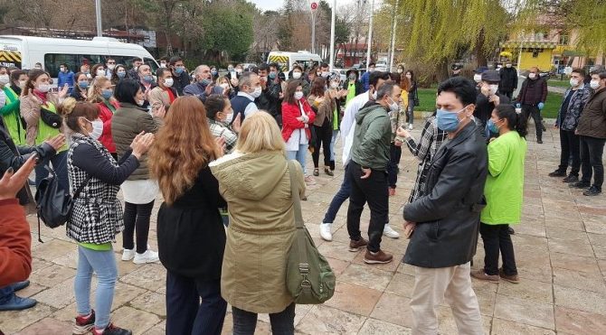 Sosyal mesafe kuralını ihlalden ceza yiyen 100 kişi eylem yaptı