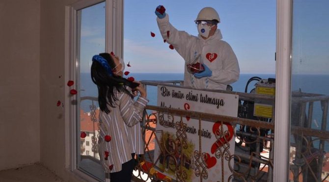 Vinçle 5’inci kata çıkıp evlilik teklif etti!