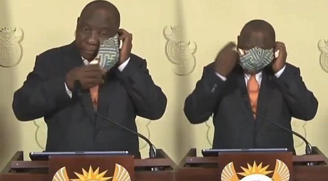 Güney Afrika Devlet Başkanı’nın maske ile imtihanı kamerada