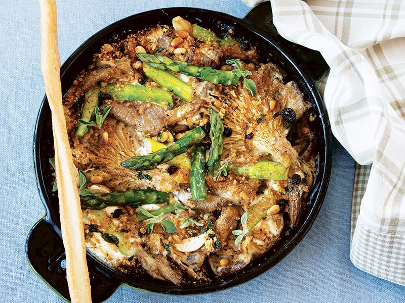 Fırında istiridye mantarlı kuşkonmaz