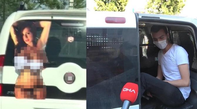Aracına çıplak kadın afişi astı, gözaltına alındı