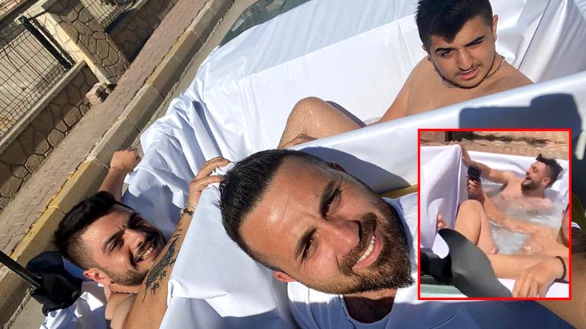 Denize girmenin yasak olduğu Antalya’da gençler, üstü açık otomobili havuza çevirdi