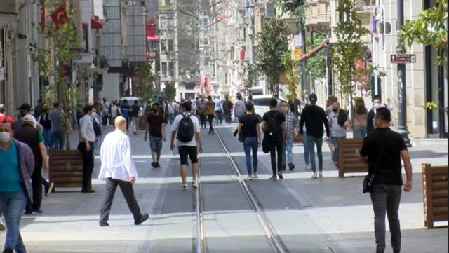 4 saatlik izinle sokağa çıkan 15-20 yaş grubu gençler İstiklal caddesinde yoğunluk oluşturdu