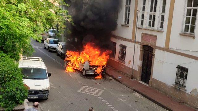 LPG’li otomobilin alev topuna döndüğü anlar kameraya yansıdı