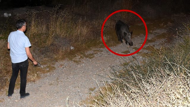 Bodrum’lu hayvansever, şehre inen yaban domuzunu elleriyle besledi