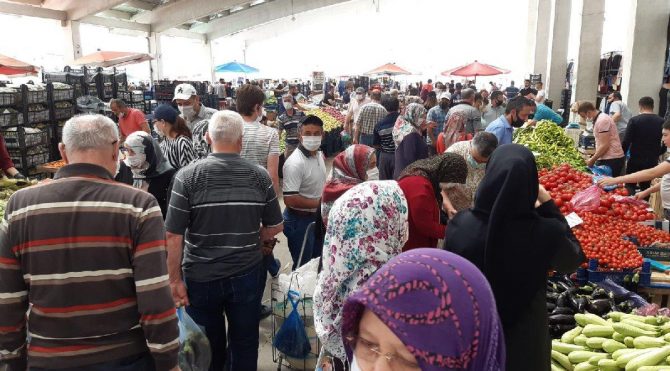 Yaşlılar da pazara akın edince sosyal mesafe hiçe sayıldı