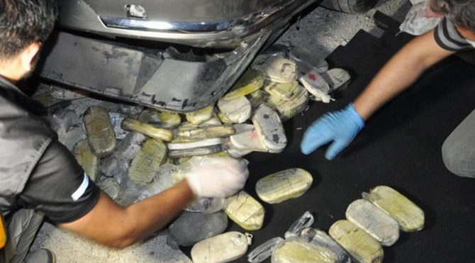Dur ihtarına uymayıp polise çarpan araçtan 34 kilo esrar çıktı
