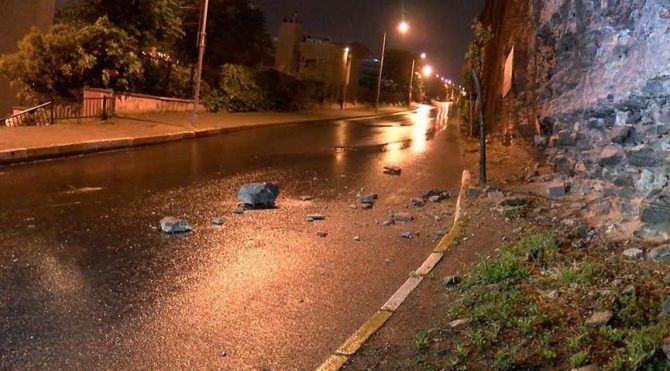 Tarihi surlardan yola taş parçaları düştü