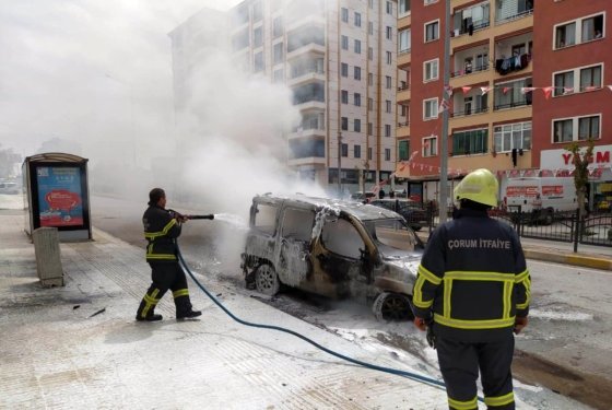 Motoru tutuşan ticari araç alev topuna döndü