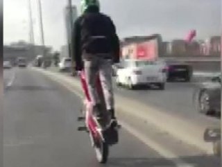 Motosikletlinin tek teker üzerindeki tehlikeli anları