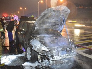 FSM Köprüsü girişinde otomobil alev aldı