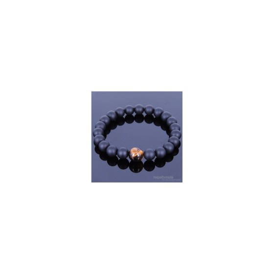 Takıcadde Gerçek Siyah Mat Oniks Kaplan Gözü Doğal Taş Bileklik